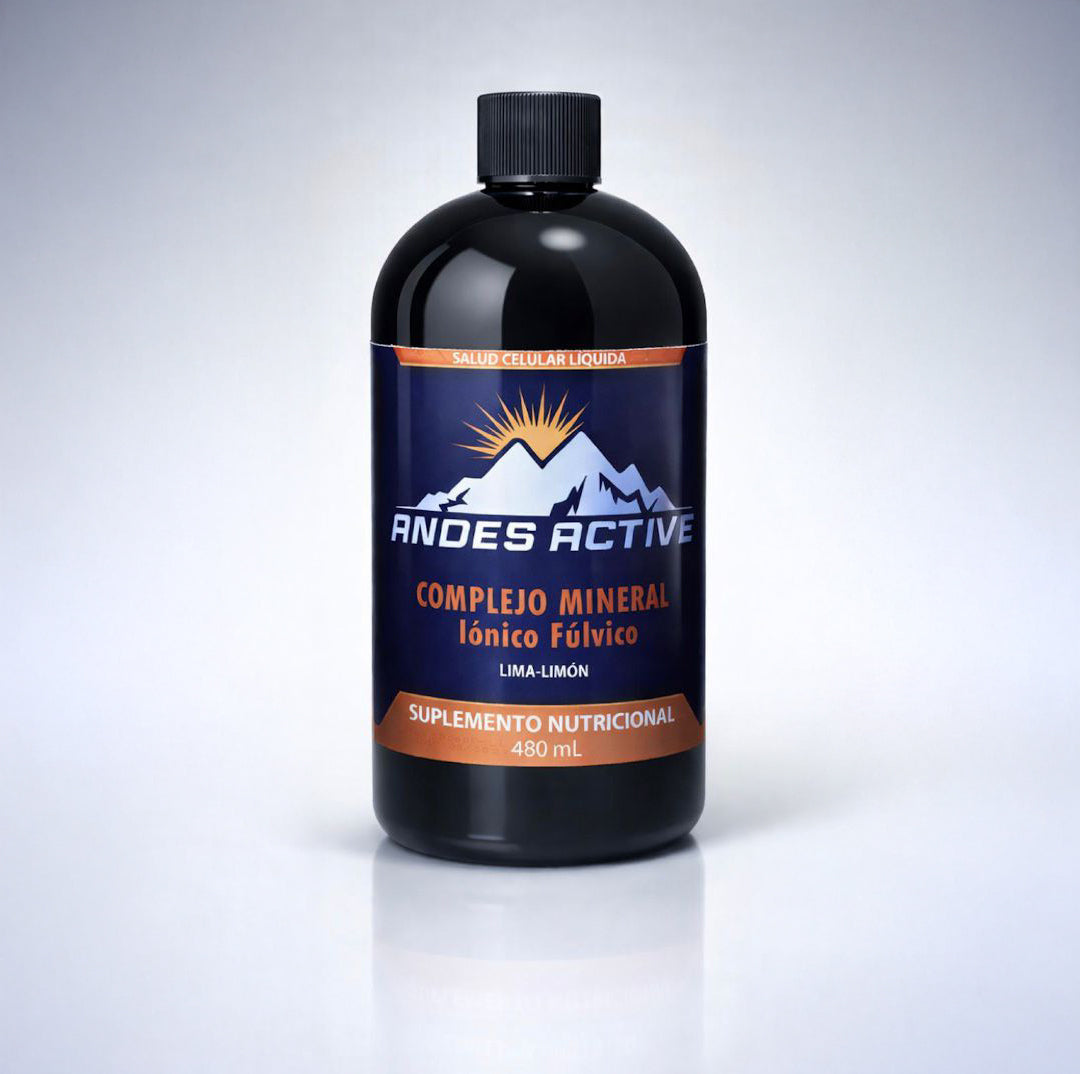 Andes Active Líquido es un suplemento nutricional innovador que combina lo mejor de la naturaleza con un proceso de extracción de alta tecnología, entregando un aporte único para la salud y el bienestar integral. Su fórmula está basada en ácido fúlvico iónico, un compuesto reconocido por su capacidad de transportar y hacer biodisponibles minerales como: Calcio, Magnesio, Fosforo, Potasio, Hierro y otros minerales trazas esenciales que muchas veces están ausentes en la alimentación moderna. Estos minerales cumplen un rol fundamental en procesos celulares clave como la producción de energía, la comunicación entre las células y la absorción de nutrientes, permitiendo que el organismo funcione de manera más eficiente y equilibrada.